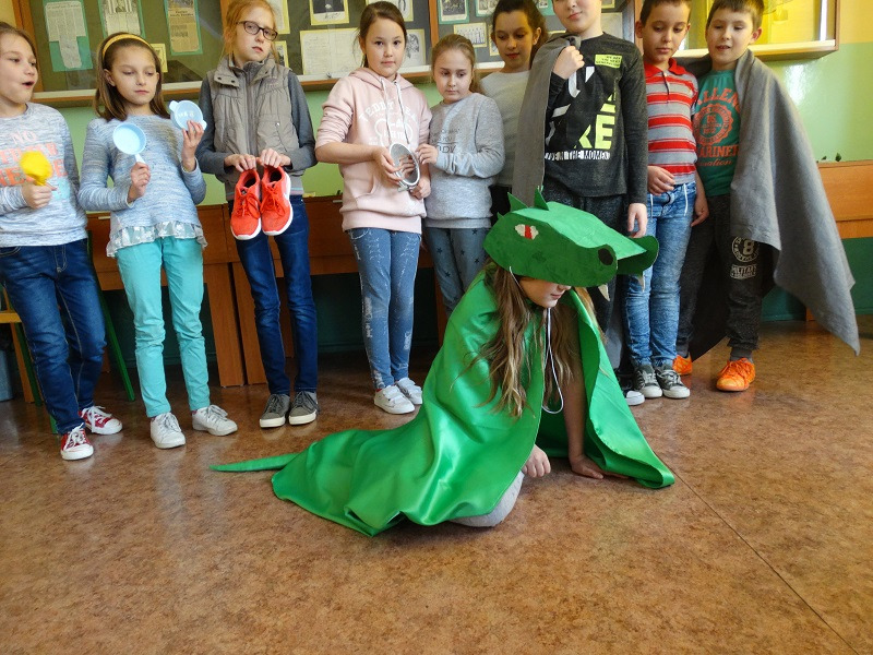 5 marca 2018 r. na lekcji języka polskiego klasa IV a bawiła się w teatr. Uczniowie przygotowali inscenizację legendy o Bazyliszku.