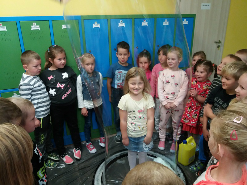 Bańki mydlane uwielbiają wszyscy, zarówno mali jak i dorośli. 15 września 2017 r. w oddziałach przedszkolnych i klasach 1-3, naszej szkoły odbył się wielki