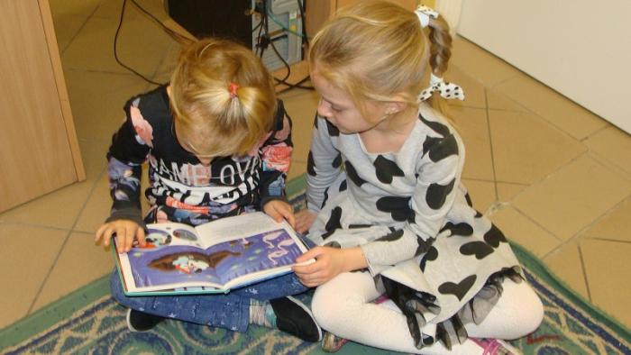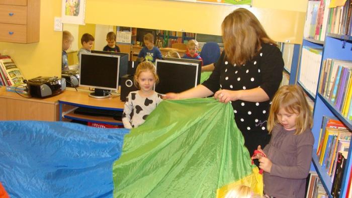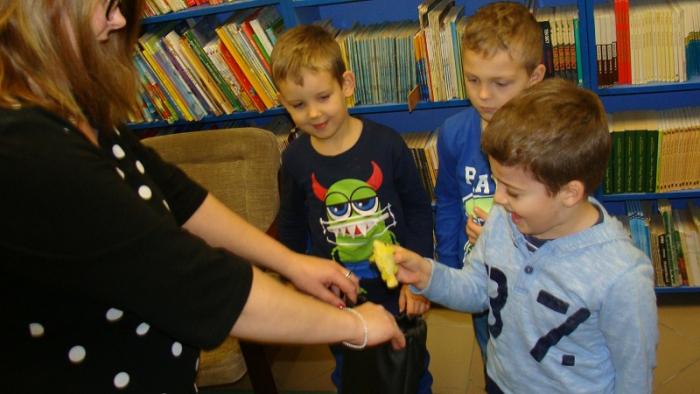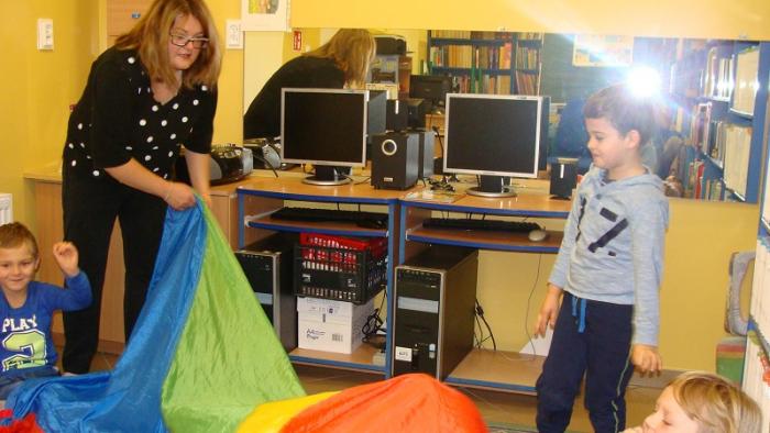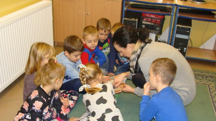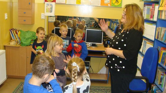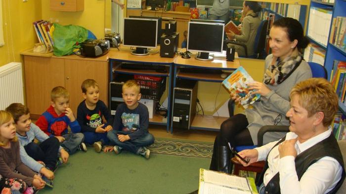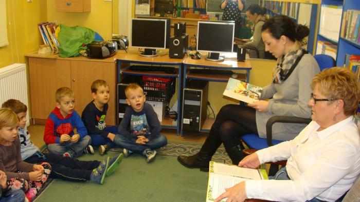 dzieci z oddziału przedszkolnego 5 - latków. Gośćmi czytającymi naszym najmłodszym pociechom były panie pracujące w szkolnym sekretariacie p. Izabela Januszewska oraz p. Teresa Paluszek. Bardzo dziękujemy obu paniom za przyjęcie zaproszenia i poświęcony nam czas.