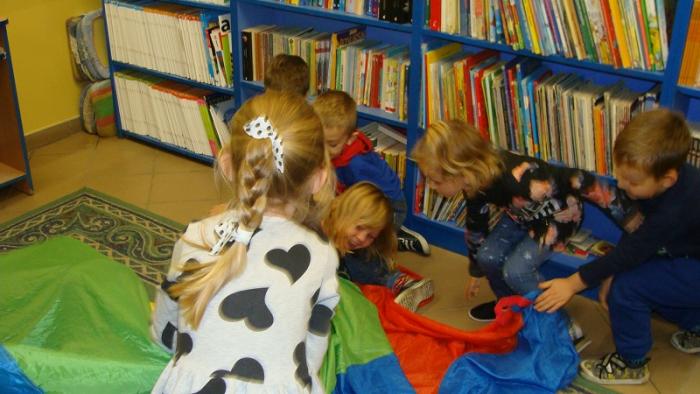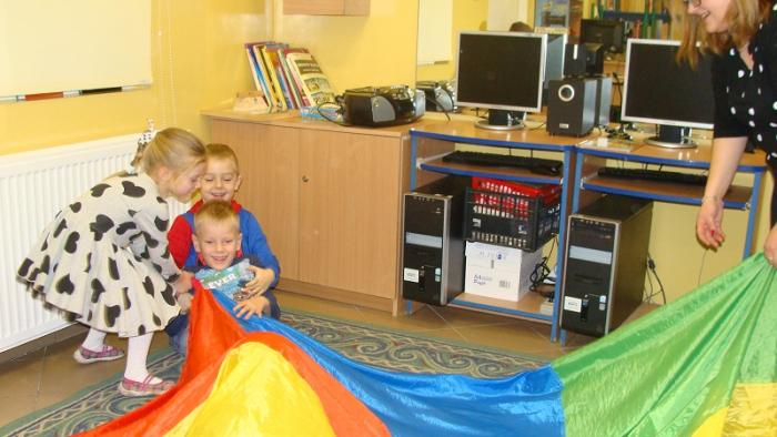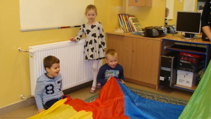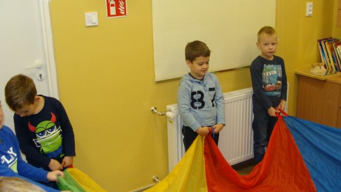 Dzisiejszym tematem "Zaczytanego piątku" była "Bajka o rybaku i złotej rybce". Po wysłuchaniu bajki dzieci nauczyły się wierszyka o rybkach oraz wspólnie bawiliśmy się chustą klanza w "Rekina w oceanie".