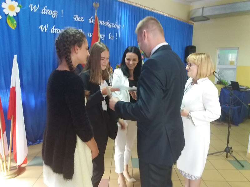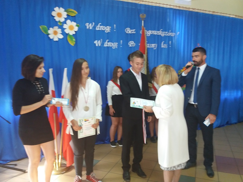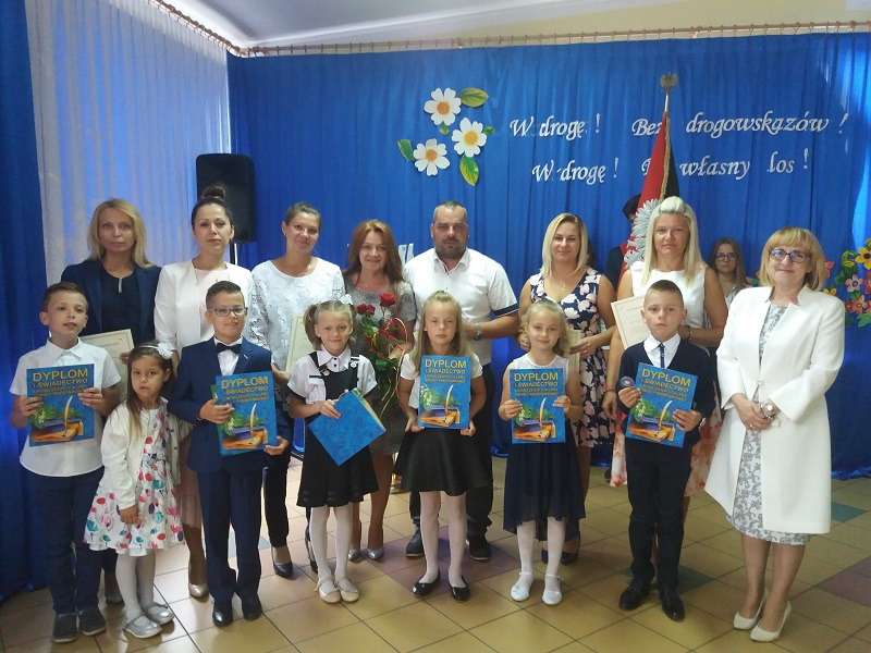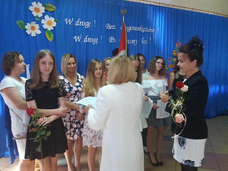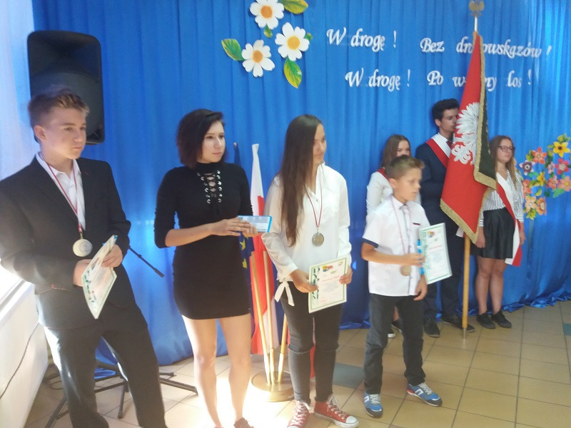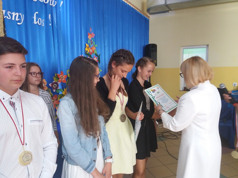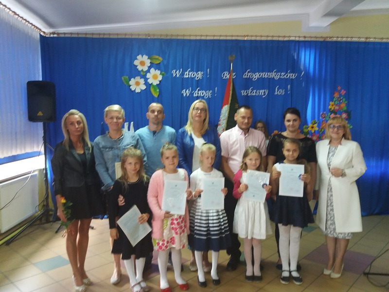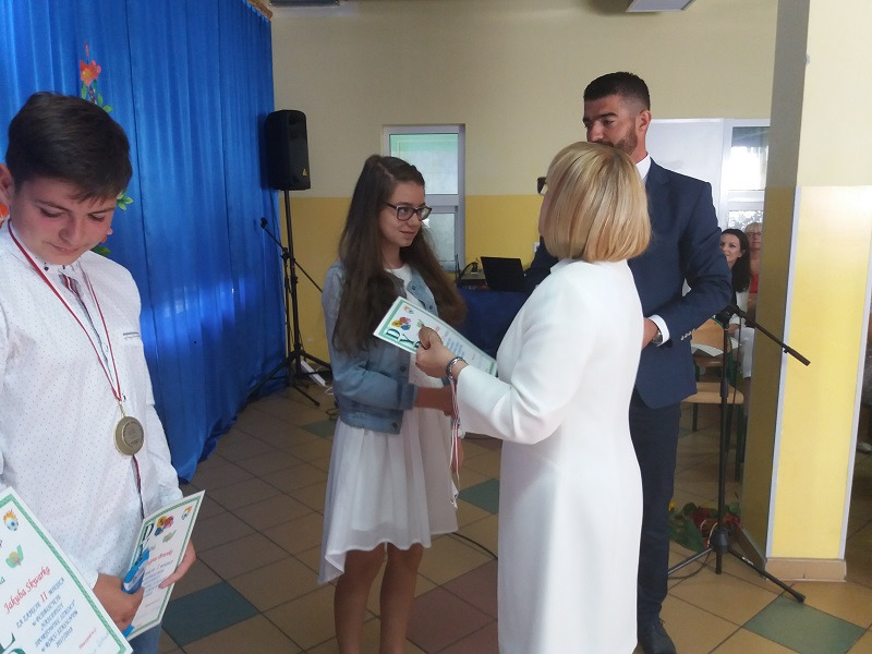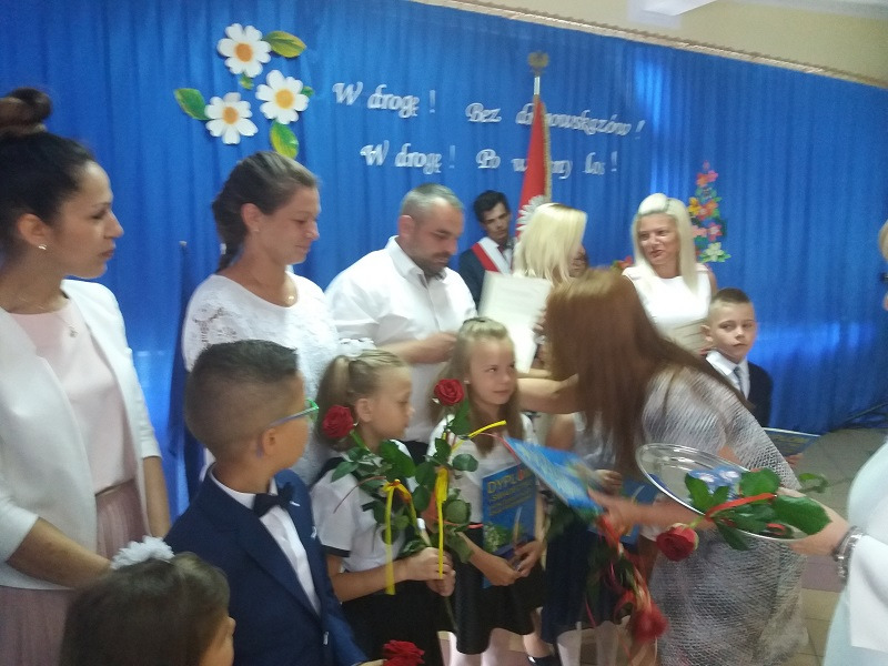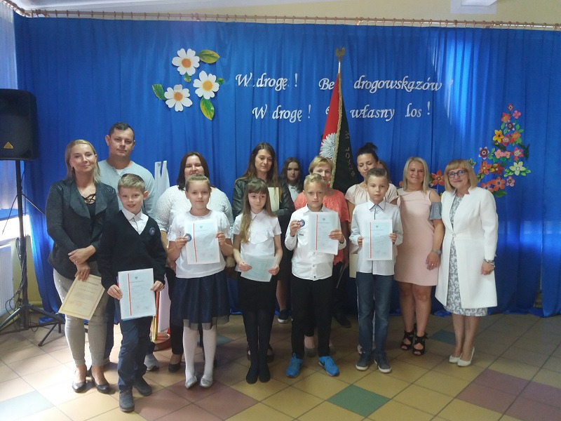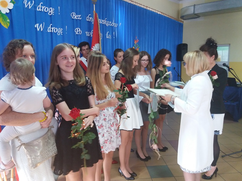 Łagoda-Ellwart. Wychowawcy poszczególnych klas wręczyli najlepszym uczniom świadectwa. Wręczono również medale dla najlepszych sportowców w roku szkolnym 2017/2018. Po części oficjalnej klasa VI pod opieką p. Andrzeja Mościckiego przedstawiła program artystyczny. Po apelu ucziowie rozeszli się do klas na spotkania z wychowawcami gdzie otrzymali świadectwa z promocją do klas programowo wyższych.