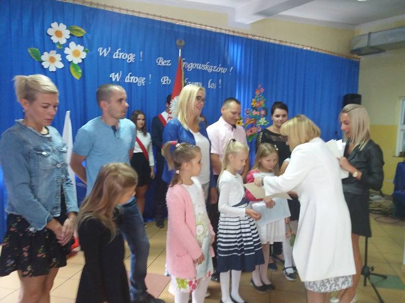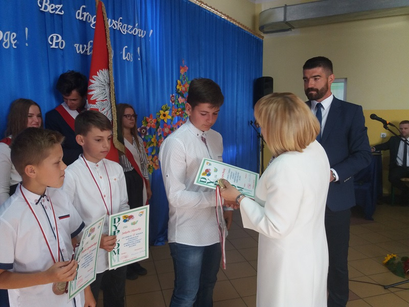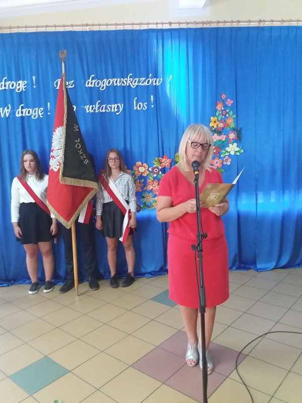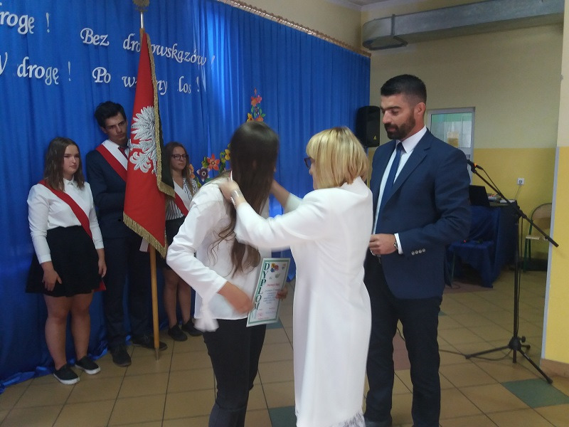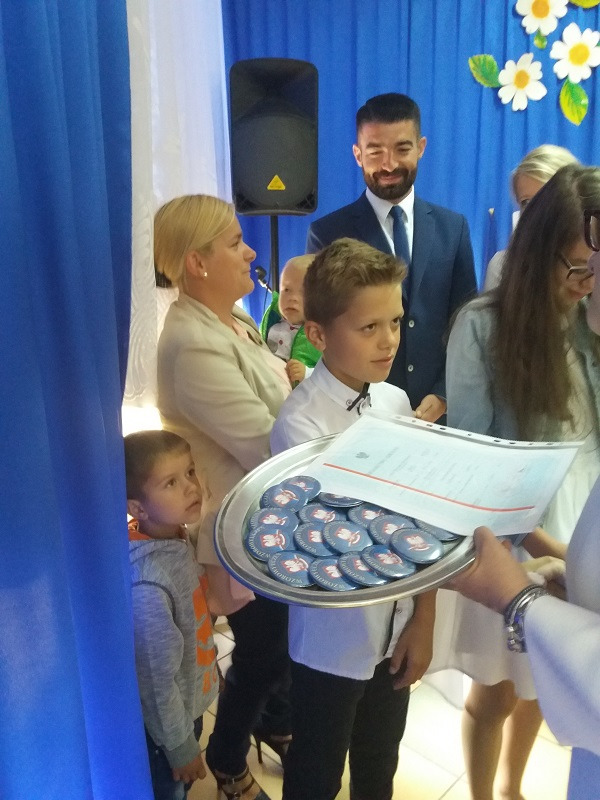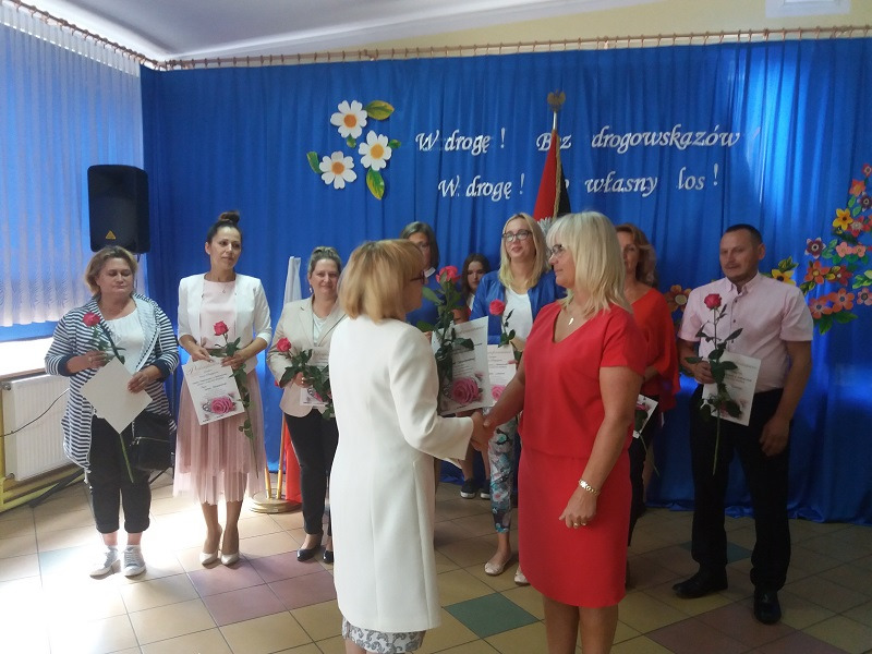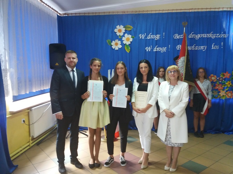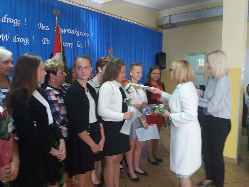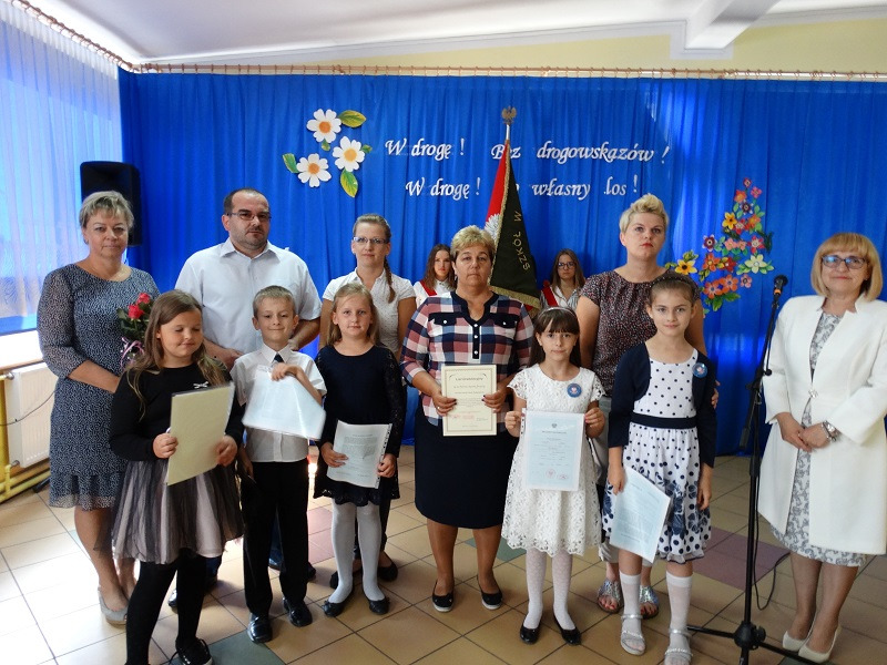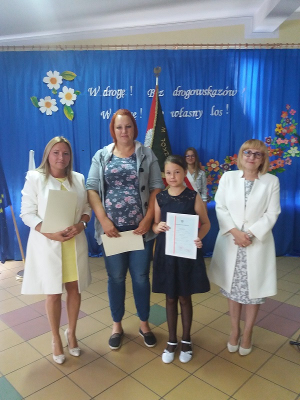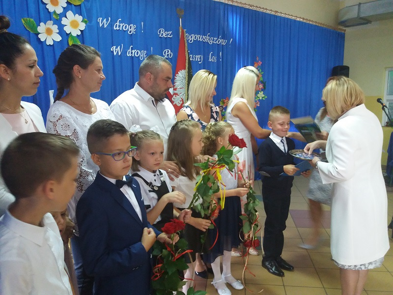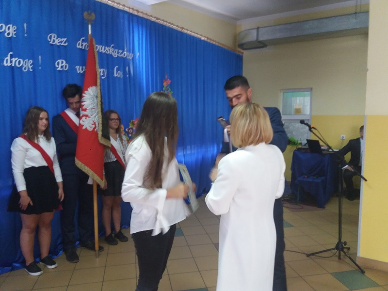 Łagoda-Ellwart. Wychowawcy poszczególnych klas wręczyli najlepszym uczniom świadectwa. Wręczono również medale dla najlepszych sportowców w roku szkolnym 2017/2018. Po części oficjalnej klasa VI pod opieką p. Andrzeja Mościckiego przedstawiła program artystyczny. Po apelu ucziowie rozeszli się do klas na spotkania z wychowawcami gdzie otrzymali świadectwa z promocją do klas programowo wyższych.
