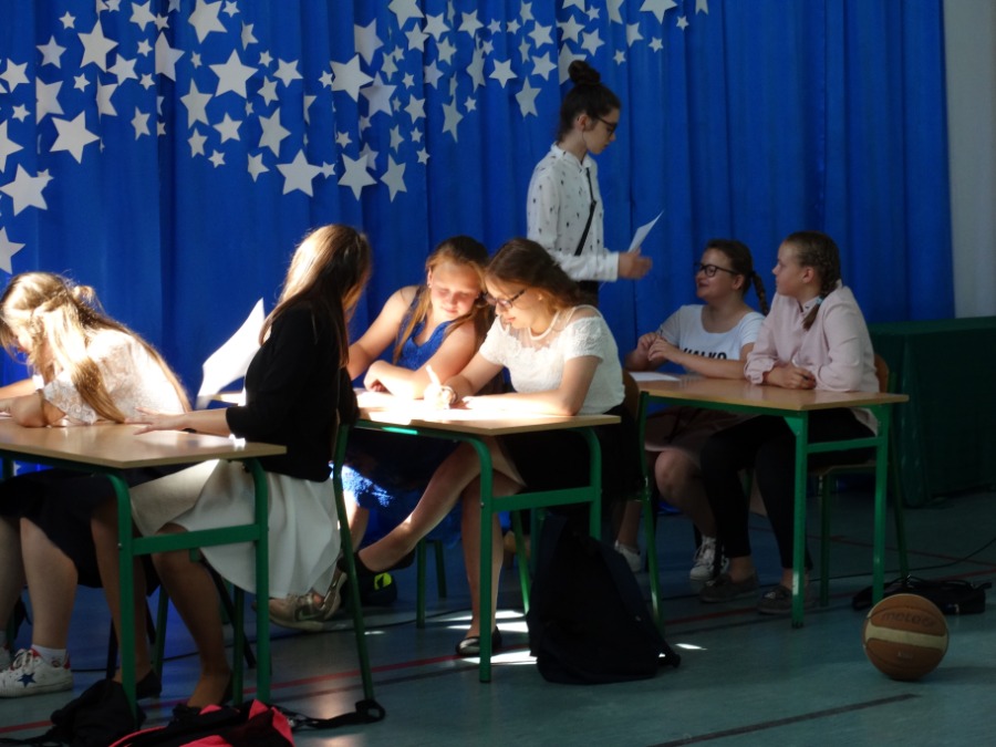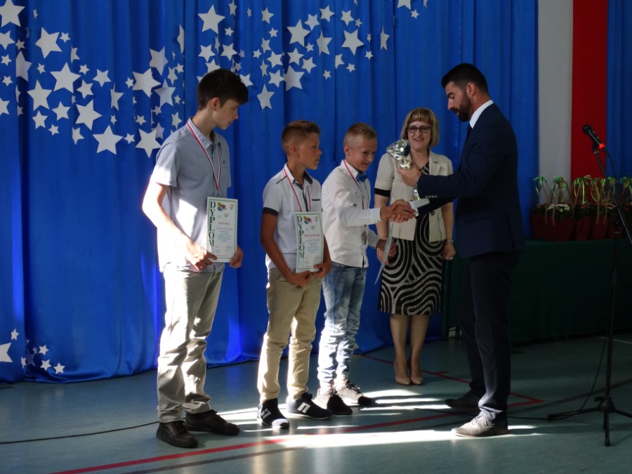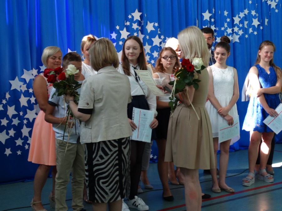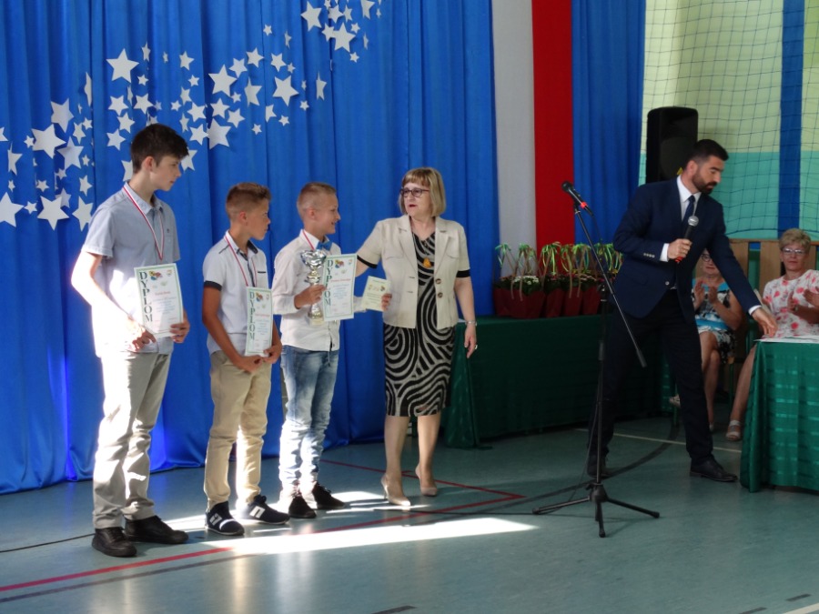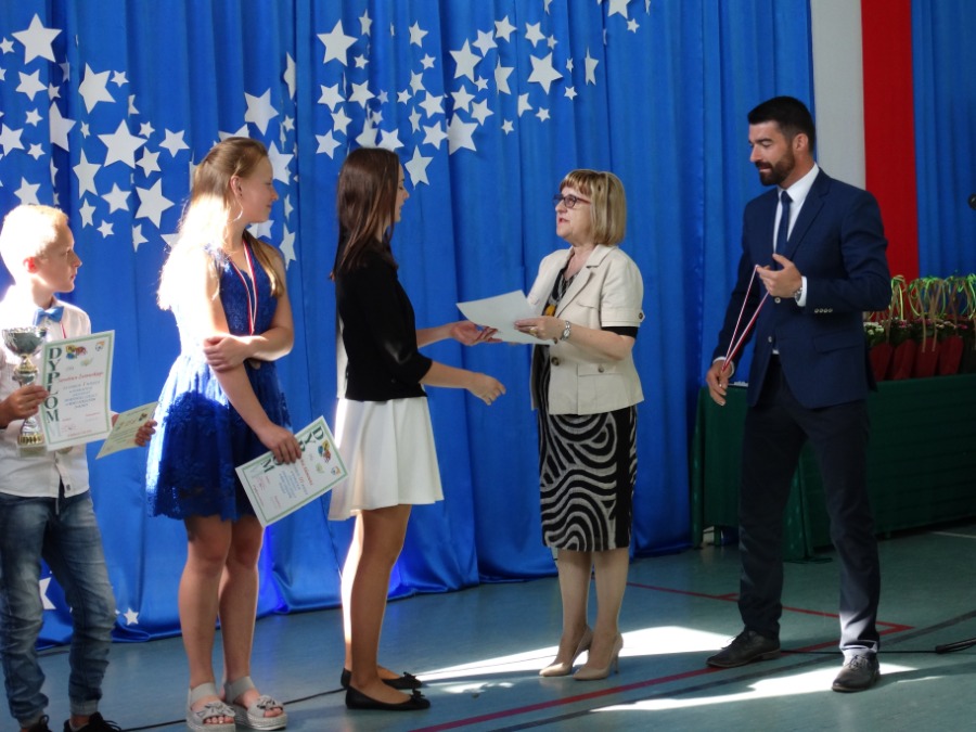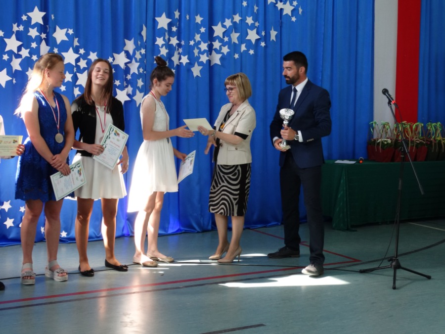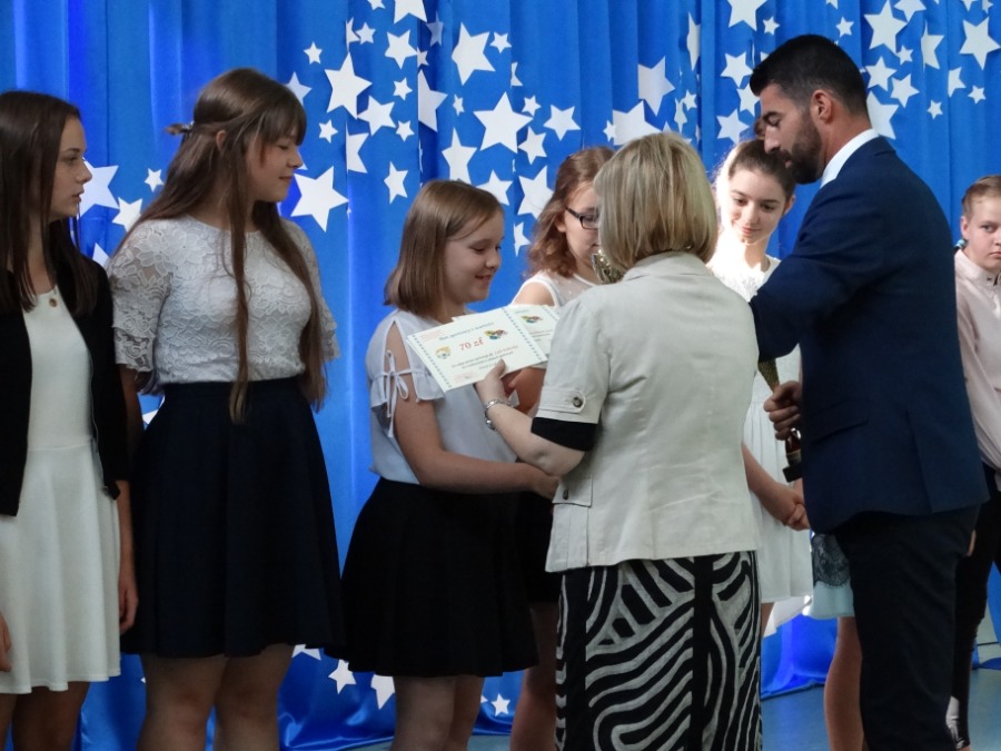 W końcu nadszedł najbardziej oczekiwany dzień przez wszystkich uczniów. Dziś otrzymali oni świadectwa promujące ich do kolejnej klasy. Najlepszym uczniom świadectwa z czerwonym paskiem wręczyła pani dyrektor Mariola Łagoda-Ellwart. Po oficjalnej części akademii kończącej rok szkolny 2018/2019 nastapiła część artystyczna. Wystąpili uczniowie klasy VI z muzyczną szkolną listą przebowjów oraz uczniowie uczęszczający na zajęcia kółka tanecznego prowadzonego przez p. A. Żółtowską i p. J.Barańczuk.
