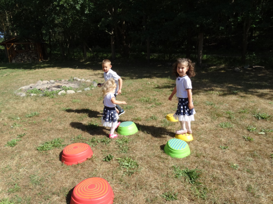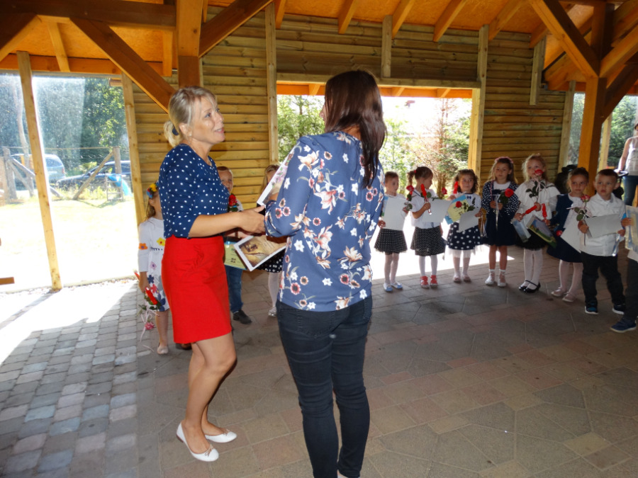 oraz wyrecytowały wakacyjne wierszyki. Pani Dyrektor Mariola Łagoda-Ellwart wręczyła dzieciom dyplomy za udział w życiu przedszkolnym oraz wspólne gry i zabawy. Po uroczystości był słodki poczęstunek i piknikowe zabawy.