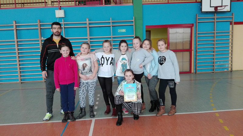 dziewcząt zajęła ostatecznie I miejsce remisując ze szkołą w Nowej Wsi lęborskiej i wygrywając z drużyną z Łebienia.