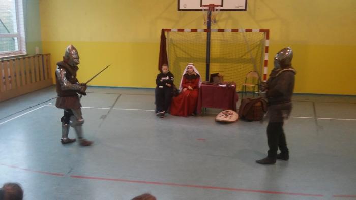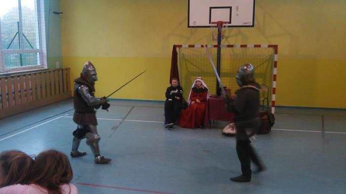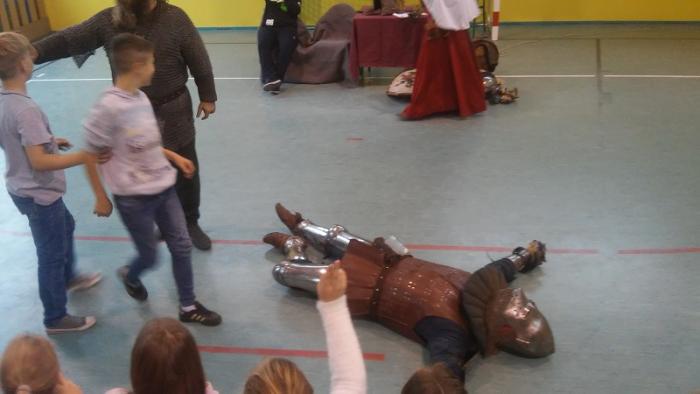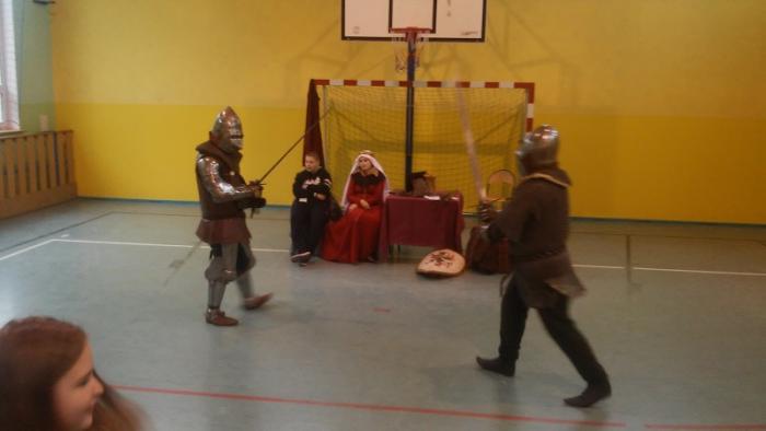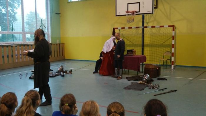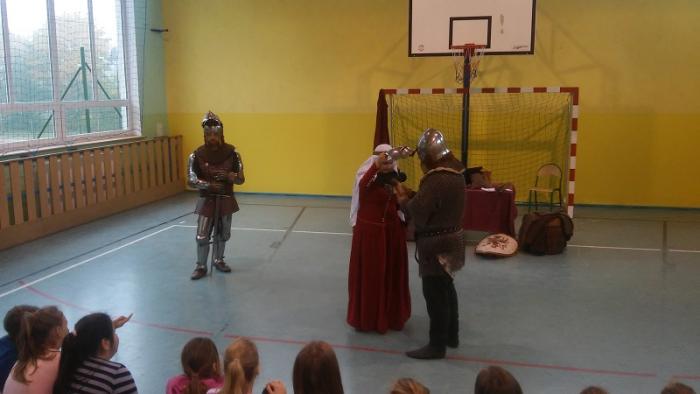 19.10.2015 r. uczniowie klasy IV, V, VI uczestniczyli w niezwykłej lekcji historii. Naszą szkołę odwiedziło Bractwo Rycerskie Księcia Bogusława V ze Słupska,
