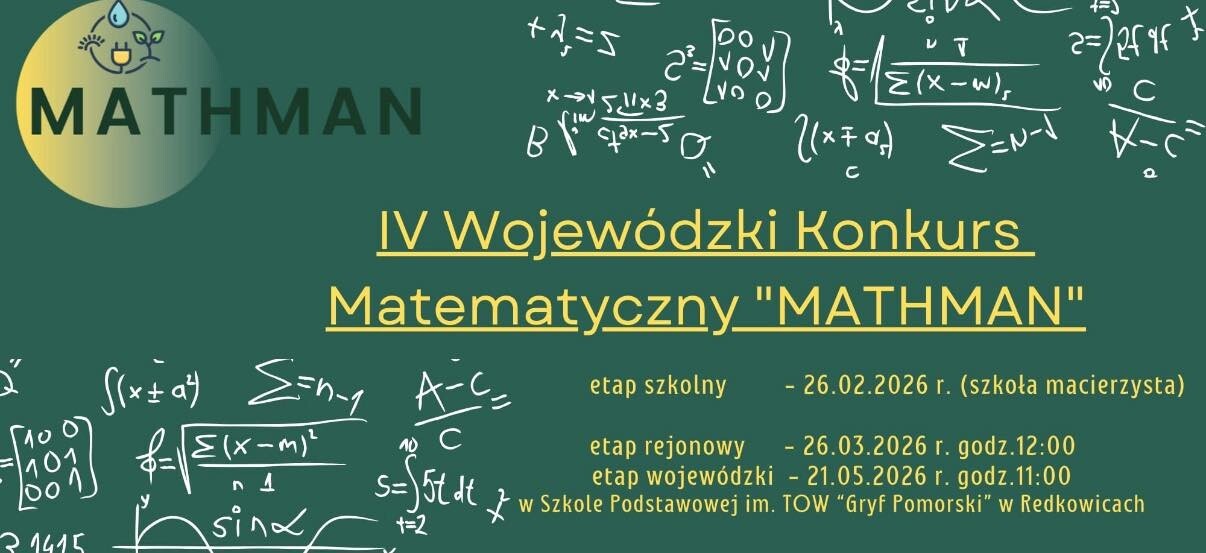 Serdecznie zapraszamy do wzięcia udziału w IV Wojewódzkim Konkursie Matematycznym „Mathman”.