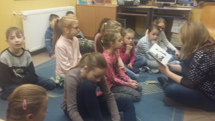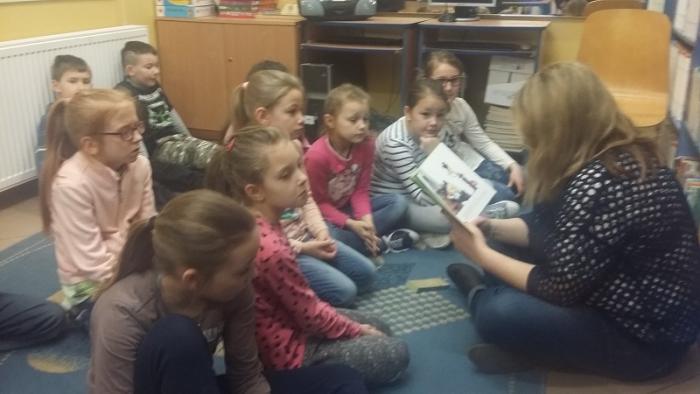 03.03.2017 r bibliotekarz zaprosił na "Zaczytane piatki" uczniów klasy III a. Dzieci wysłuchały dwóch opowiadań z książki