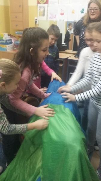 Grzegorza Kasdepke pt. "Detektyw Pozytywka", która jest na złotej liście akcji Cała Polska Czyta Dzieciom. Uczniowie wczuli się w rolę detektywa, złodzieja i policjanta. Dużo radości przyniosła nam zabawa z chustą klanza.