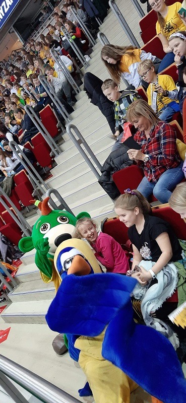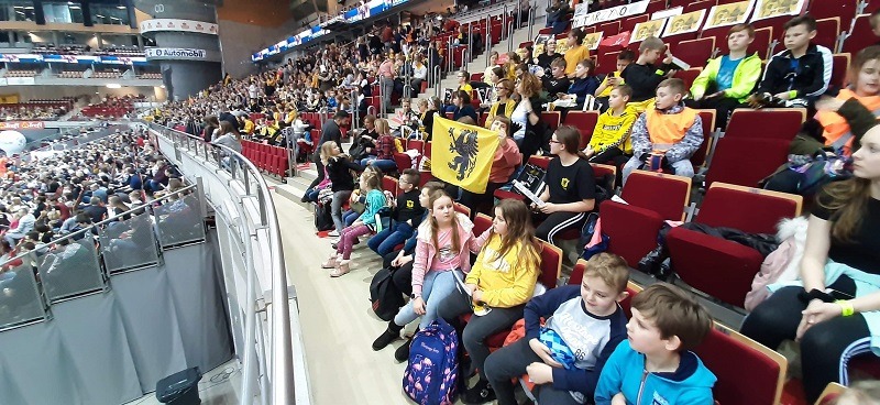W dniu 14 lutego br. już po raz trzeci pojechaliśmy się do ERGO ARENY w Gdańsku, aby kibicować naszym siatkarzom w Kaszubskim meczu TREFL GDAŃSK-CUPRUM LUBIN. Kibicami meczu byli uczniowie uczący się języka kaszubskiego na całych Kaszubach. Warunkiem udziału w meczu było wykonanie pracy plastycznej nt. Historia powrotu Pomorza do Polski, wysłanie najlepszych do Zarządu Głównego Zrzeszenia Kaszubsko - Pomorskiego w Gdańsku. Na arenach powiewały kaszubskie flagi, żółto-czarne transparenty. Wszyscy gorąco kibicowaliśmy naszym , dzięki czemu mecz zakończył się miażdżącym zwycięstwem TREFLA GDAŃSK, 3:0.