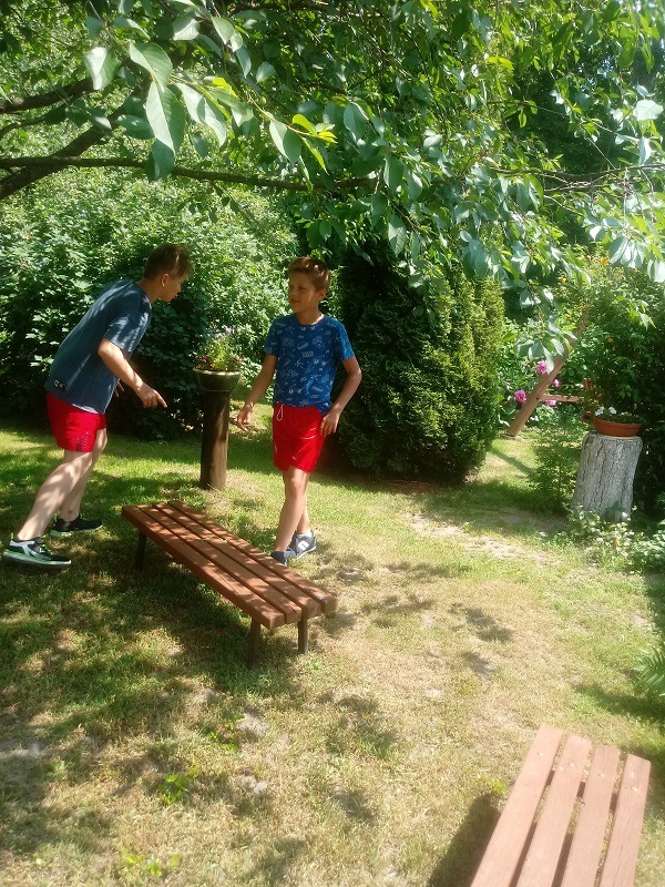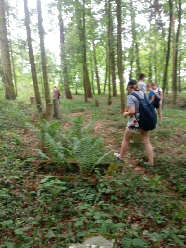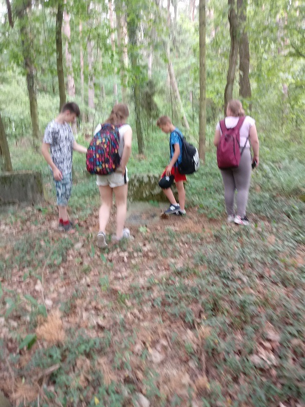 Piękna pogoda zachęciła do przeprowadzenia kolejnej lekcji w terenie. 7. czerwca uczniowie klasy VI wraz z opiekunem P. Renatą Hopa wybrali się pieszo do Niebędzina. Mijając malownicze pola odwiedzili stary niemiecki cmentarz w lesie, następnie warsztat rzeźbiarza ludowego P. Jana Redźko, po czym udali się na miły odpoczynek w ogrodzie Oliwii. Babcia Oliwii, P. Janka poczęstowała sokiem, truskawkami. Na koniec pobytu udaliśmy się na plac zabaw w parku.