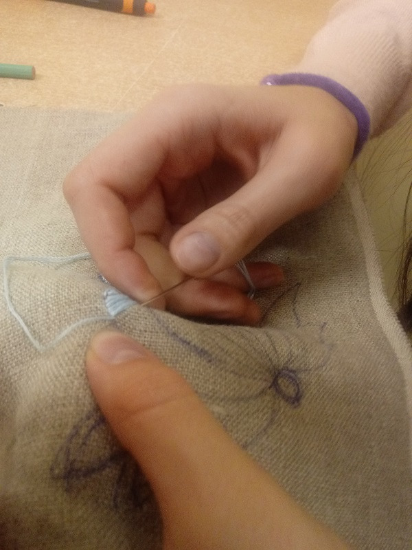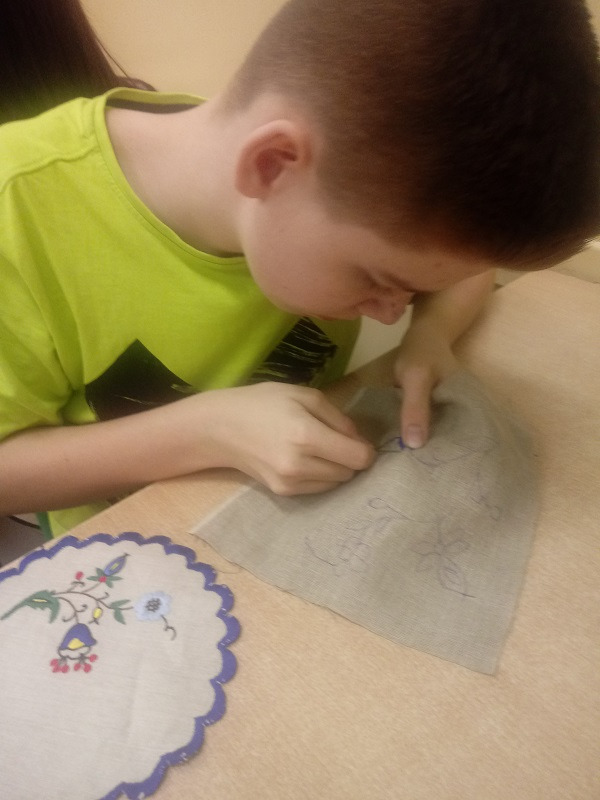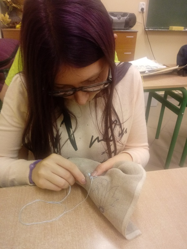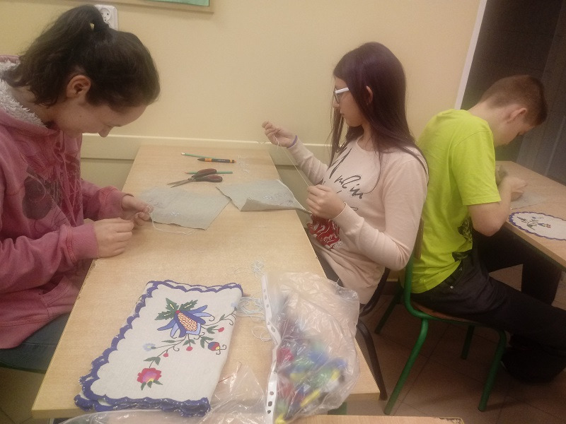 Na zajęciach języka kaszubskiego uczniowie uczyli się wyszywać haft kaszubski.